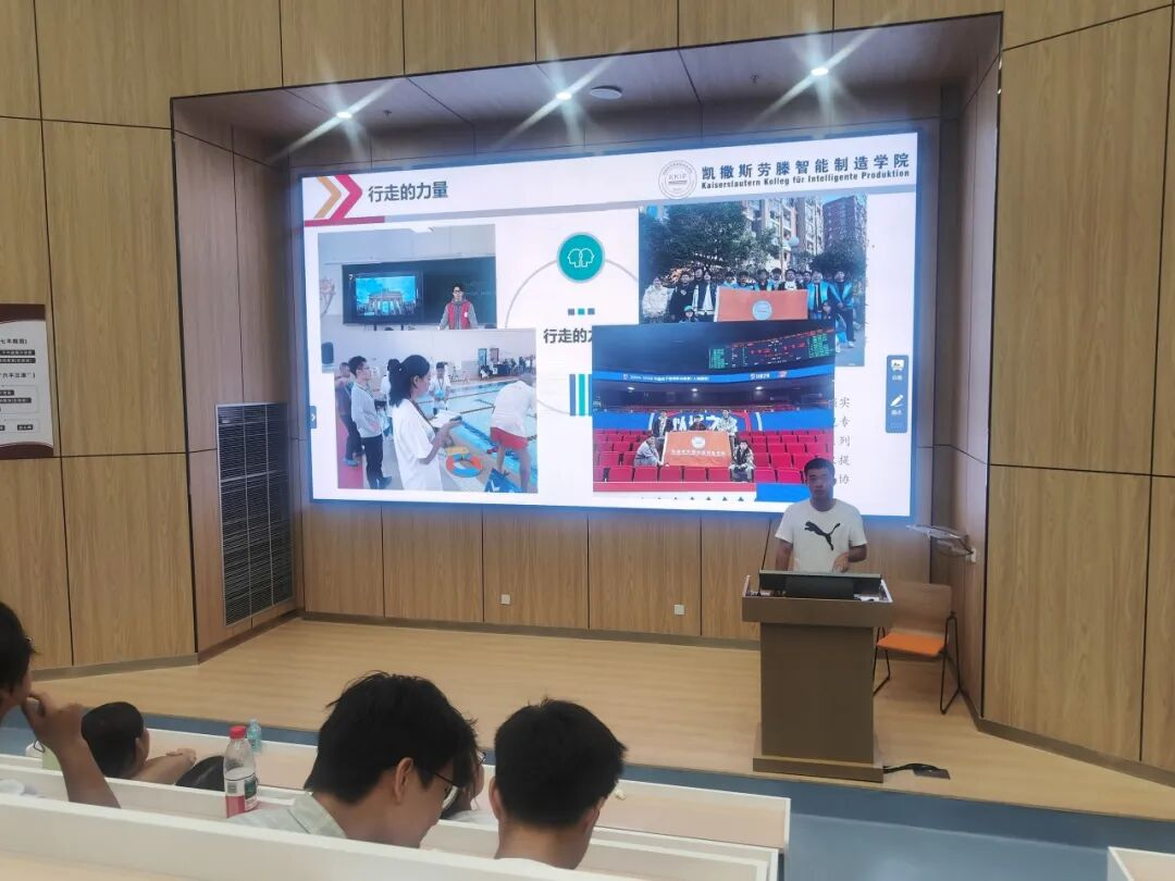 Zu Beginn nahm Cai Cheng aktuelle gesellschaftliche Themen als Ausgangspunkt, um die Studierenden anzuleiten, über die zugrunde liegenden Zusammenhänge und Hintergründe tiefgründig nachzudenken und dadurch ihre akademische Begeisterung zu wecken.Er stellte zudem detailliert die Vorteile der sino-deutschen kooperativen Bildungsprogramme, den Antragsprozess für Auslandssemester sowie die Kooperationserfolge des Kollegs mit deutschen Hochschulen und deutschen Unternehmen vor.Dadurch zeichnete Herr Cai einen klaren Weg für die zukünftige akademische und berufliche Entwicklung der Studierenden.