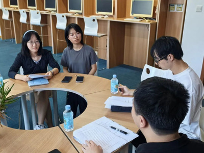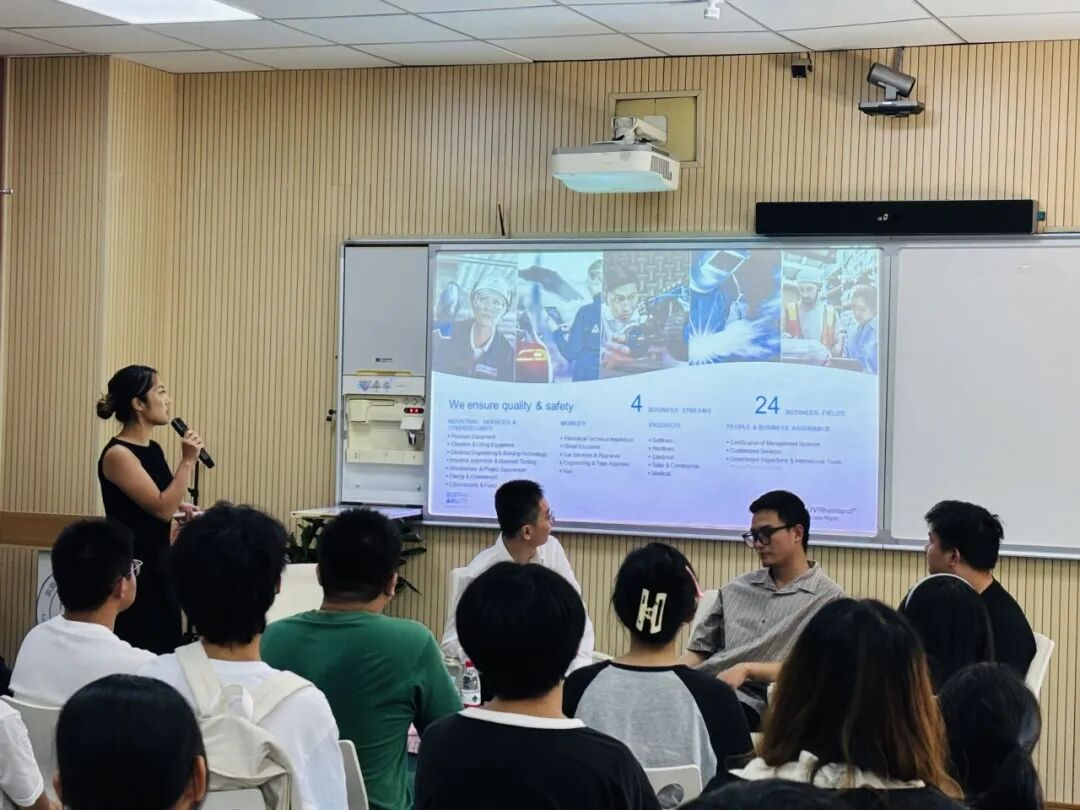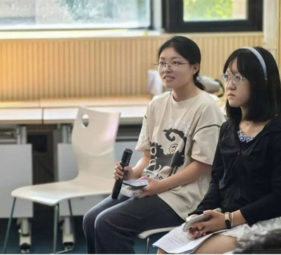 Um 13:00 Uhr nachmittags startete der Alumni-Mentor-Workshop mit regem Austausch. Zu diesem Workshop wurden die Alumni der Jahrgang 2020 Xiang Jiayue (TUV Rheinland) und Li Xiaobo (Servicezentrum für Unternehmen im Lingang-Neubereich), sowie die Alumni der Jahrgänge 2023 Yuan Hang (Shanghai Baoye Group) und 2024 Hu Wenhao (Shanghai Baiyulan Tabakmaterial Co., Ltd.) eingeladen. Die vier Alumni-Mentoren führten einen vertieften Austausch mit den anwesenden Schülern durch.