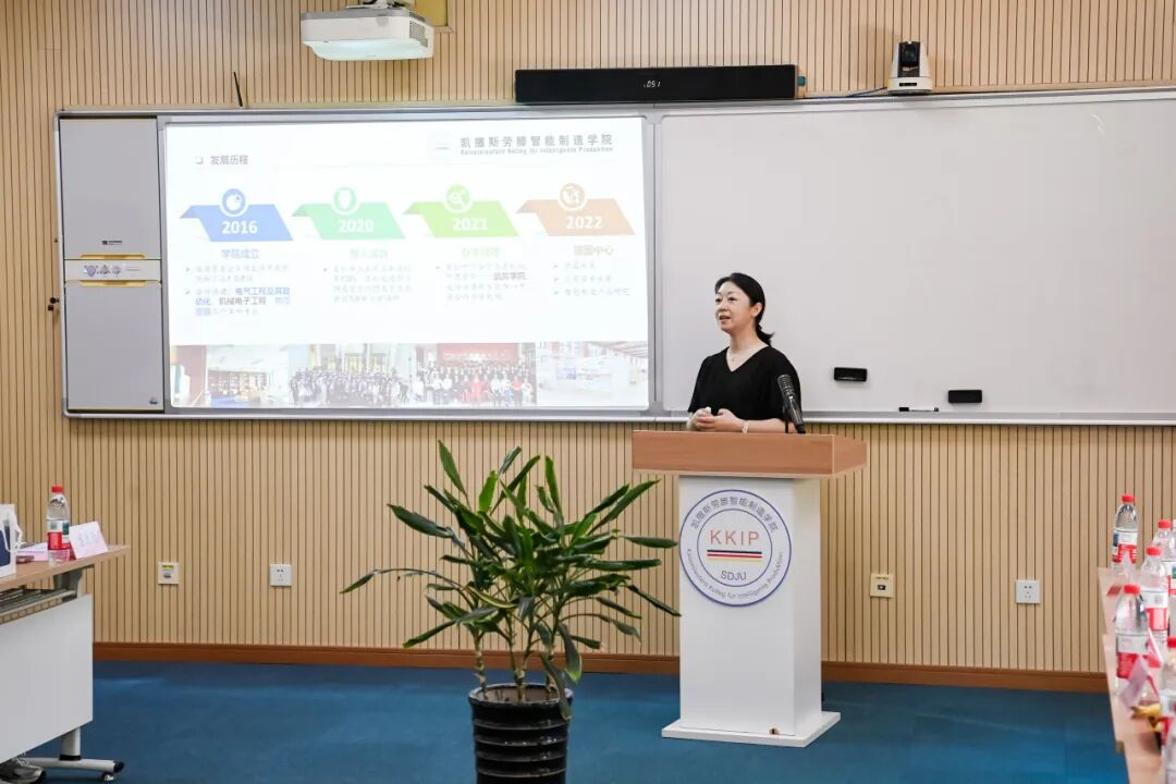 Shao Bing verkündete die Liste der ersten Alumni-Mentoren des Kaiserslautern Kollege für Intelligente Produktion (KKIP). Zhao Hongxia übergab den ernannten Alumni-Mentoren nacheinander die Einweihungsurkunden – ein Zeichen für die Verbesserung und Innovation des Mechanismus des Kollegs zur Förderung der ethischen Bildung ("Moralischkeit vermitteln und Menschen formen").