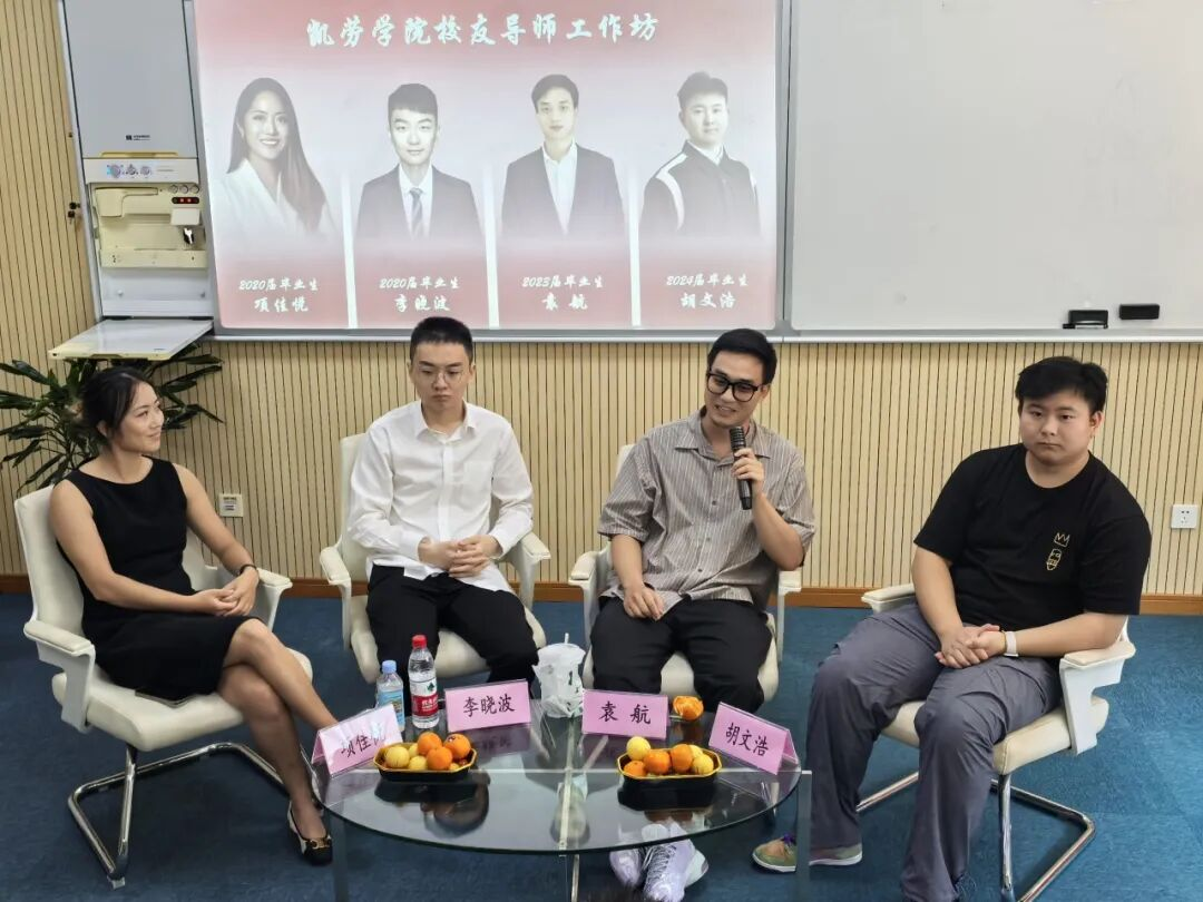 Die vier Alumni-Mentoren lieferten eingehende Darlegungen zu drei Themenbereichen: "Erinnerungen an die Zeit in KKIP – Welche Campus-Erfahrung hat dir am meisten geholfen?", "Berufliche Entwicklung – Was sind die Schlüsselwörter deines Wachstums vom Studenten zum Berufstätigen?" und "Ausblick auf die Zukunft der Branche – Welche Kernkompetenzen sollten wir in Zeiten neuer Entwicklungstrends entwickeln?". Anschließend führten sie einen regen Austausch mit den jüngeren Kommilitonen und teilten ihre "Erfolgsgeheimnisse" mit.