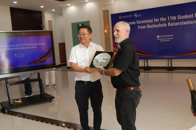 Vizepräsident Wang Hongzhi der Shanghai Dianji University,, die Schulleitung der Technischen Schule Lingang sowie Vertreter:innen der Abteilung für Internationale Beziehungen, der Abteilung für Studienangelegenheiten, des Parteisekretariats für Internationale Bildung und der Fakultät Kaiserslautern nahmen an der Empfangsfeier teil. Die Feier wurde gemeinsam von Liu Ruoheng und Tang Jingying, Studierendeder Fakultät Kaiserslautern, moderiert.